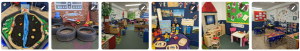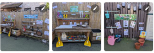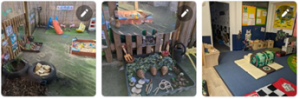 Outdoor is free flow access and has designated play areas also such as construction, sand, water, cosy corner and of course we have a climbing frame, plenty of bikes, scooters and dinosaur stomping feet in our outdoor shed!